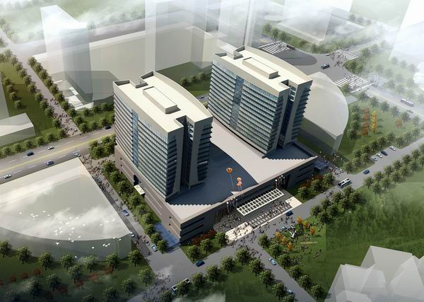 本工程用地位于遼寧省撫順市。用地西臨盛城街,東臨撫順市政府,南臨臨江路,北臨新城路,城市地理位置優(yōu)越,交通便利,具有得天獨(dú)厚的市場環(huán)境和優(yōu)良的開發(fā)潛質(zhì)。本工程規(guī)劃用地面積13704平方米,總建筑面積80853平方米,其中A#商務(wù)辦公樓建筑面積為25800平方米,B#商務(wù)辦公樓建筑面積為25200平方米,C#商業(yè)建筑面積為20156平方米,D#地下車庫建筑面積為9697平方米,容積率5.9,建筑密度57.19%。建筑使用年限為50年?;貎?nèi)自然地面較為平坦,建筑高度為75米。功能為商務(wù)辦公及商業(yè)經(jīng)營。建筑由兩個塔樓一個大底盤裙房構(gòu)成。地下一層,地上17層。